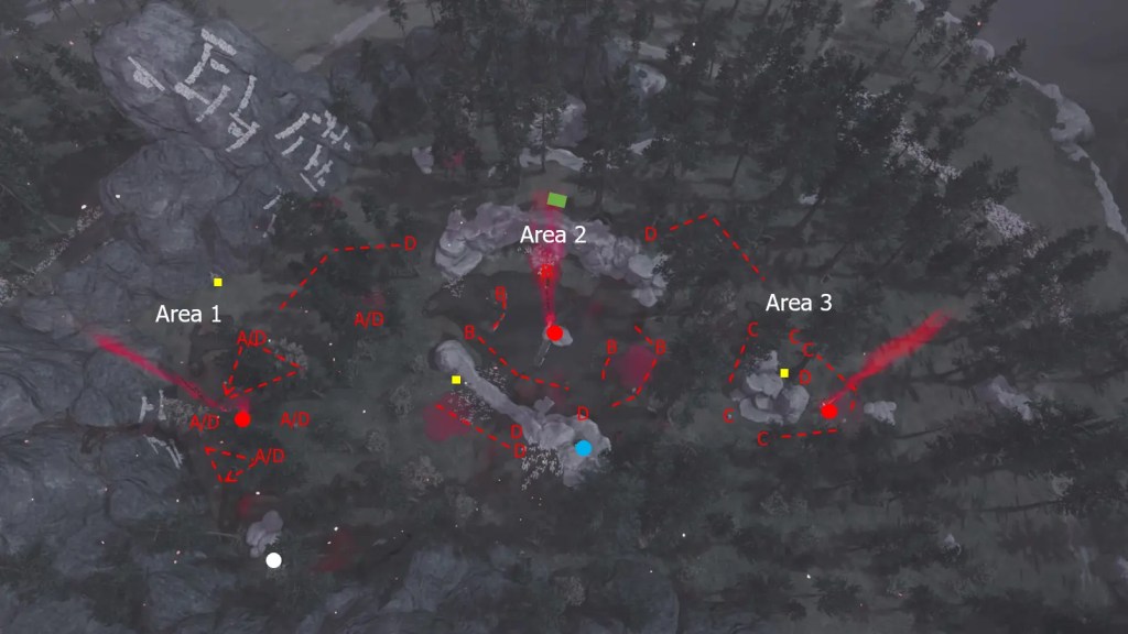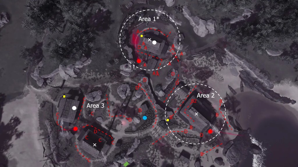 - The white dashed circles are the best guest for group D enemies being too close to the prisoner.