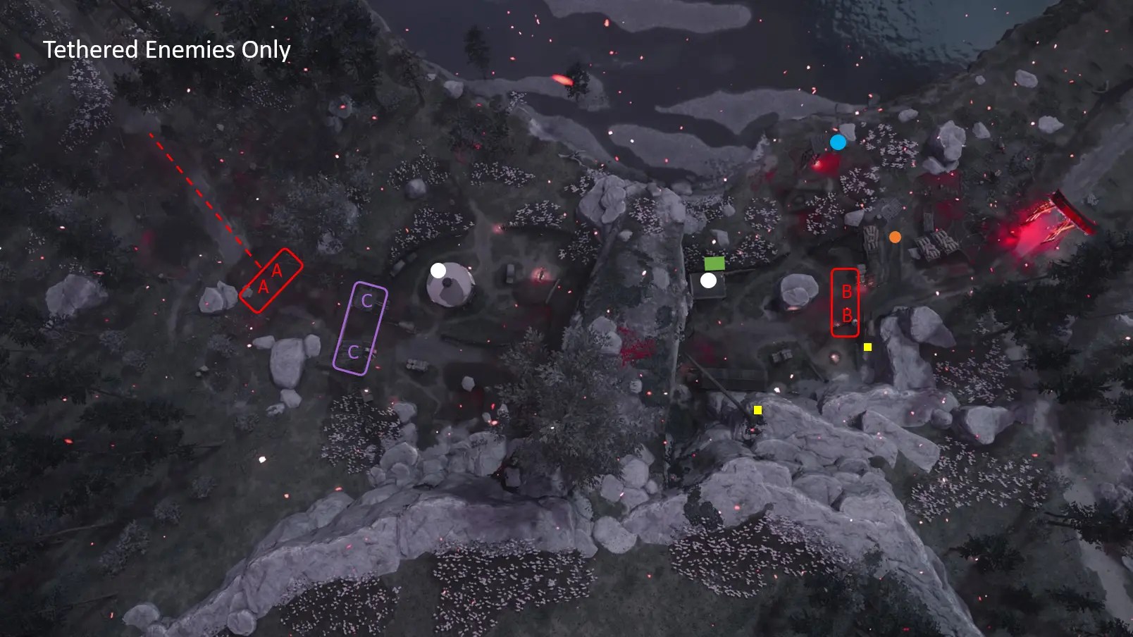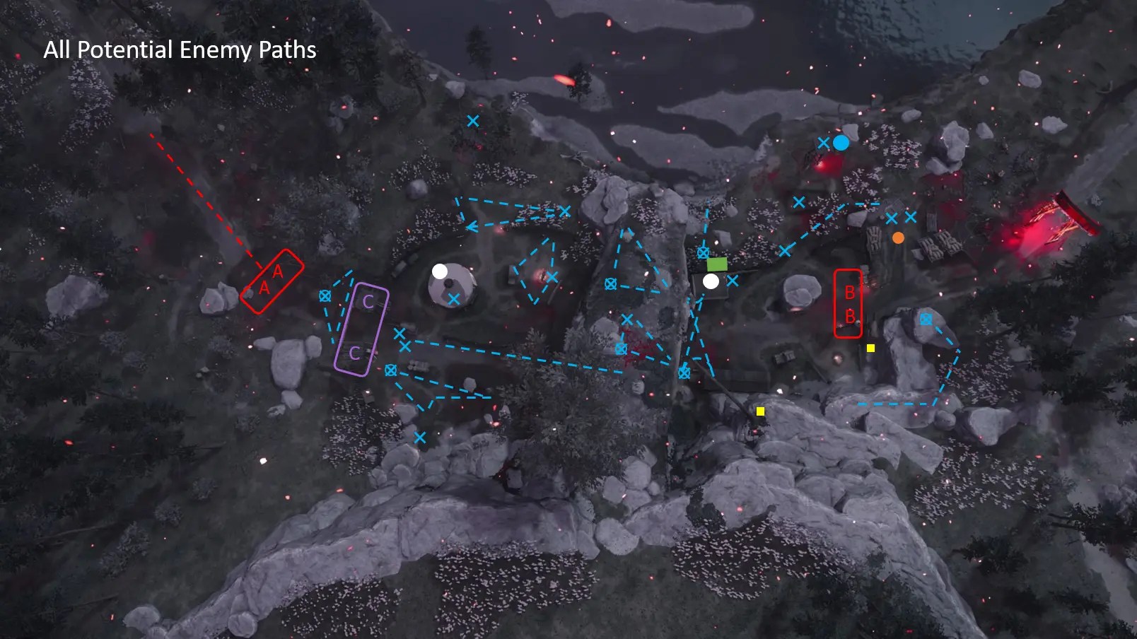 - There are more spawn locations than enemies for spots marked with an “x.”